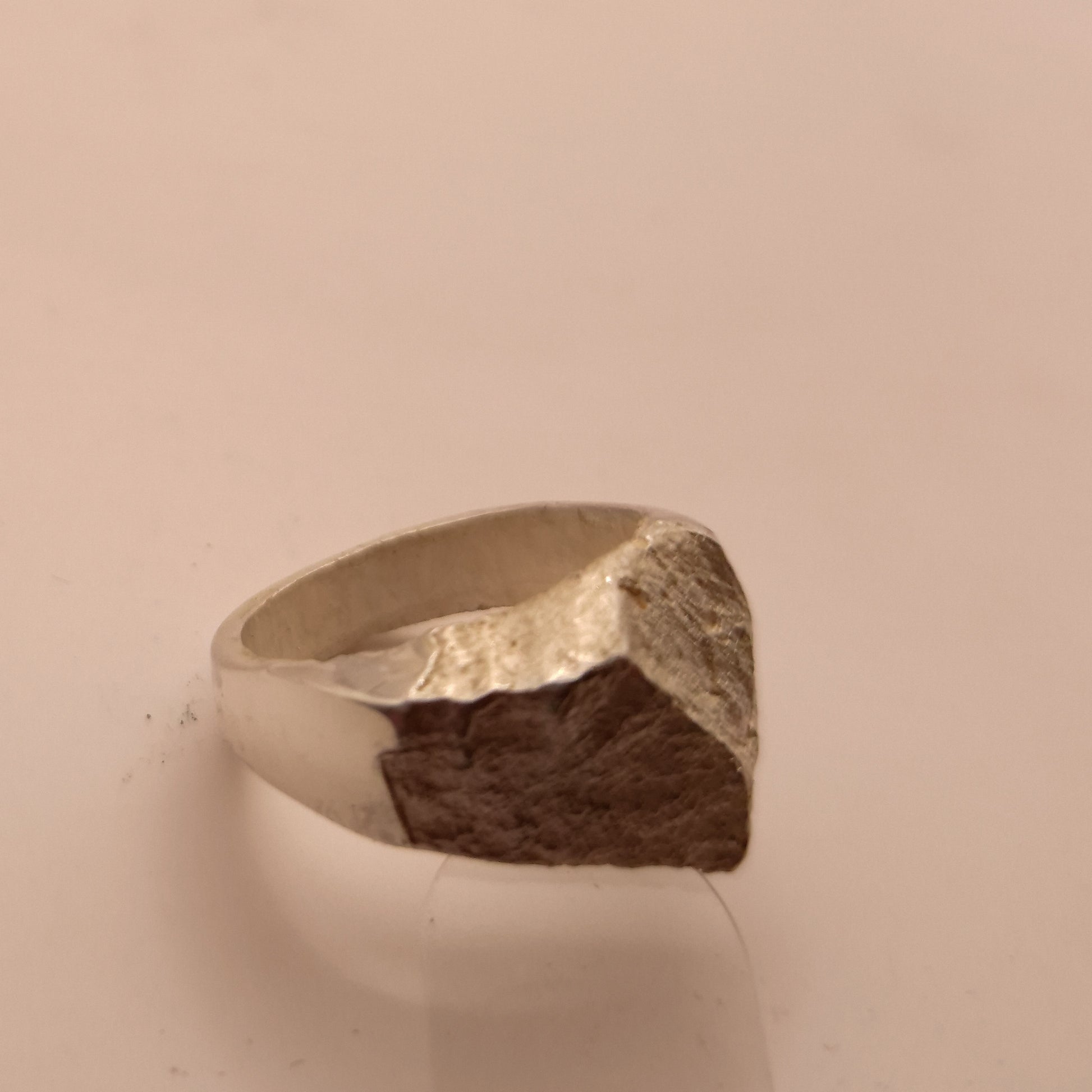Silver ring with stone texture, mixed with the smooth surface of mirror polished 925 sterling silver.